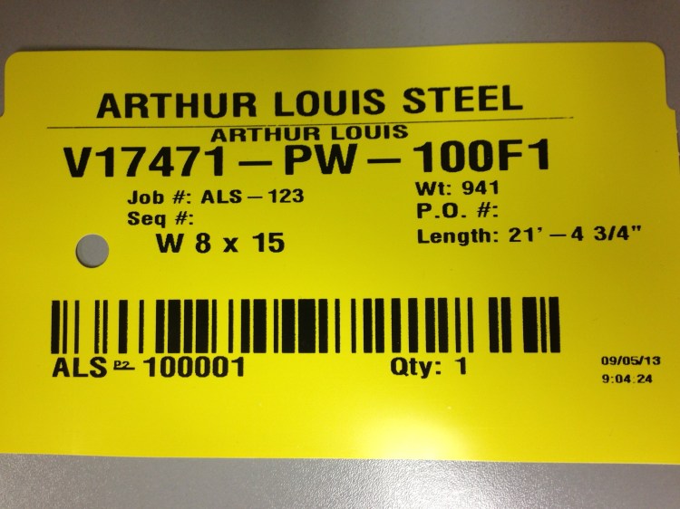 After each project has been through the work order generation process, the next step is to link it with our bar coding steel tracking software from P2 Programs STS (Steel Tracking System). Once the information has been linked to STS we have the capability to monitor every part fabricated through the various stages of the fabrication process. This is completed using mobile handheld PC’s that scan barcode tags as members travel throughout our facilities. Some of the tasks performed and electrically documented are as follows: